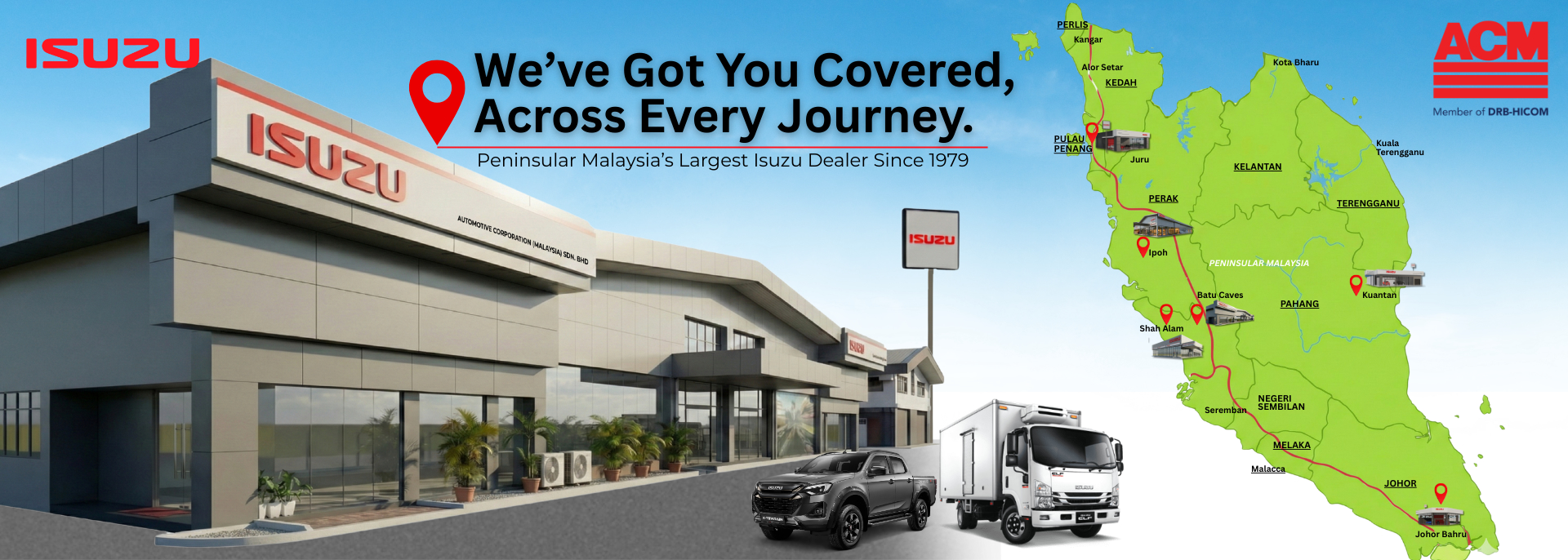 Established in 1979, Automotive Corporation (M) Sdn Bhd (ACM) is the largest Isuzu dealer in Peninsular Malaysia and a proud member of the DRB-HICOM Group. With decades of experience, ACM is known for delivering reliable Isuzu pickup trucks and commercial vehicles, backed by exceptional sales and after-sales service. Recognised with multiple industry awards, ACM continues to uphold its reputation for trust, quality, and excellence in the automotive sector.