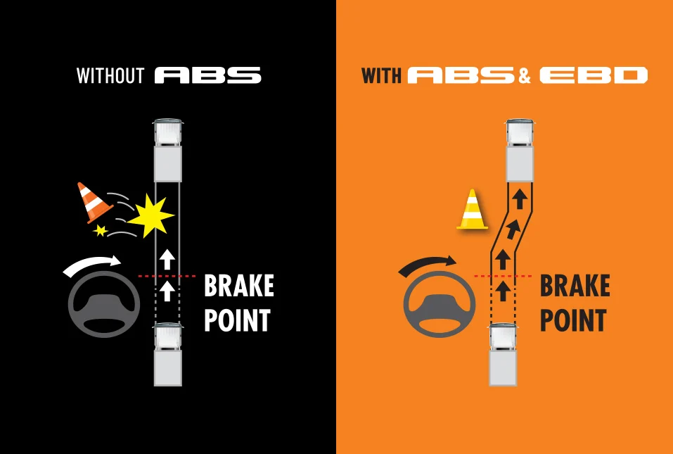 | Hydraulic Pressure Assistance and Anti-Lock Brake System (ABS) with Electronic Brake Force Distribution (EBD) |